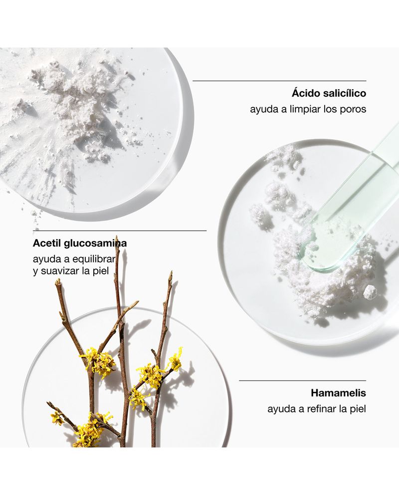 Nuestros exfoliantes líquidos están potenciados por activos*, como hamamelis, BHA (ácido salicílico) y acetil glucosamina, para una exfoliación perfecta dos veces al día.