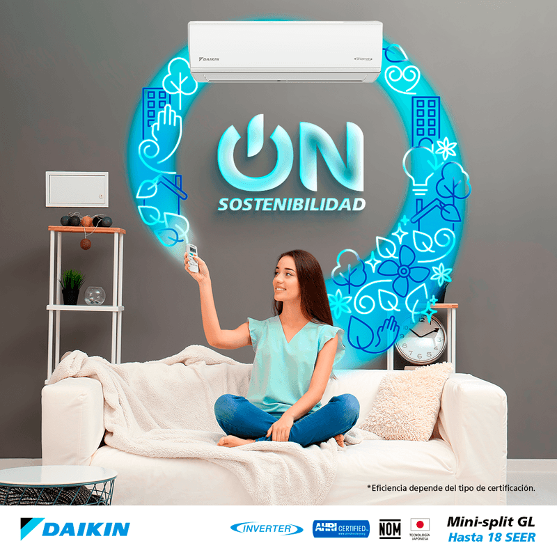 Este modelo ofrece un alto nivel de eficiencia energética, con un SEER18 lo que significa un menor consumo de electricidad.