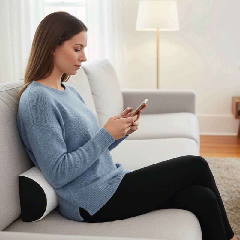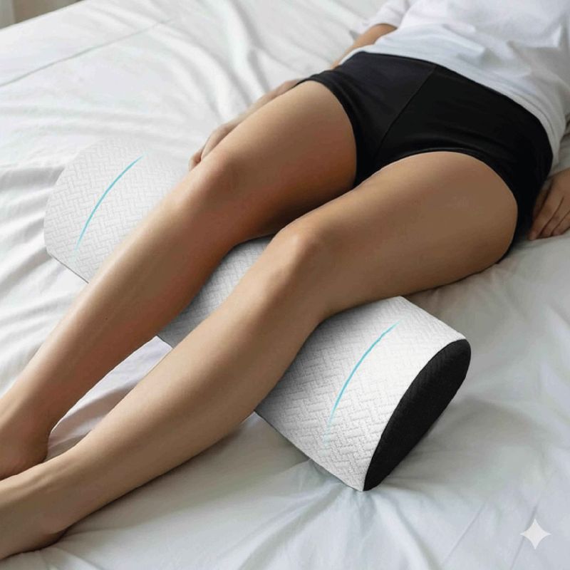 Cuenta con un diseño ergonómico en forma de media luna, ideal para brindar soporte en piernas, rodillas espalda baja o cuello, adaptándose a diferentes necesidades de descanso y postura.
