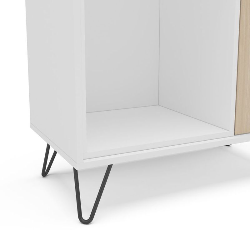 El aparador Cayman tiene como función decorar tu hogar ya sea en la sala o cocina. El mueble en color (blanco/legno salinas) presenta un estilo moderno y funcional.