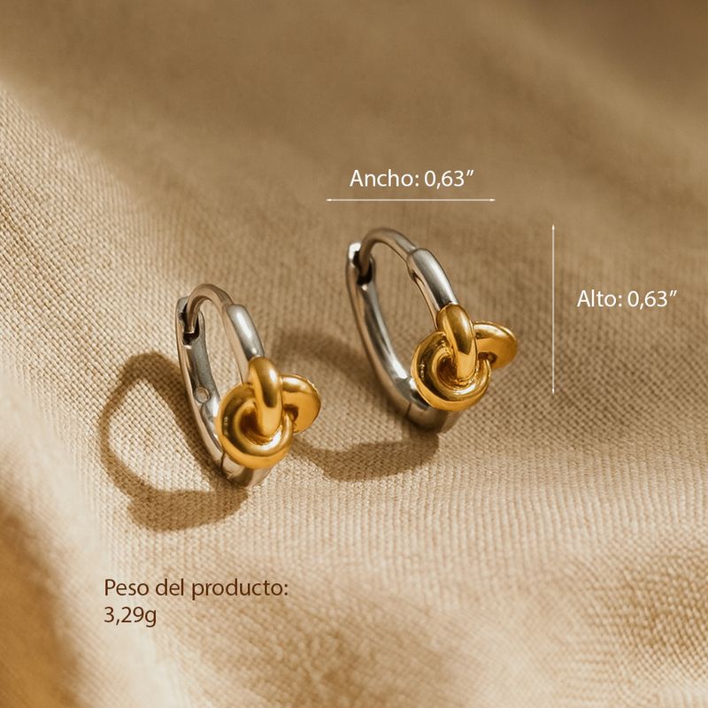 -Diseño bicolor con detalle de nudo dorado que resalta sobre el aro metálico plateado.