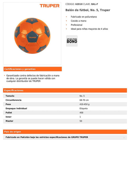 Balón de fútbol profesional fabricado en poliuretano y cosido a mano, diseñado para brindar excelente rendimiento y durabilidad. Ideal para niños mayores de 4 años, con una construcción resistente y adecuada para entrenamientos y juegos continuos.
