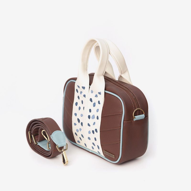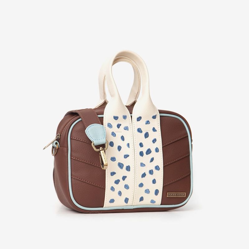 Es un bolso de hombro pequeño y funcional, que cuenta con dos asas de PVC bordadas con lunares en contraste, una correa bordada removible y ajustable, que te permite decidir cómo llevar tu bolso de hombro, convirtiéndolo en un bolso de hombro práctico y versátil para complementar tus outfits.