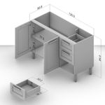 Ofrece 2 puertas con amplio espacio de almacenamiento, 3 cajones para cubiertos, utensilios entre otros.