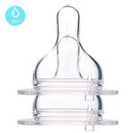 El biberón ancho, suave y flexible está diseñado para imitar la forma y la sensación de un pecho, lo que ayuda a que el bebé se sujete de forma natural y se alimente cómodamente. La válvula anticólicos está diseñada para mantener el aire alejado de la pancita del bebé durante la alimentación, a fin de ayudar a reducir los cólicos y los malestares. Ideales para edades 0M+, libre BPA.