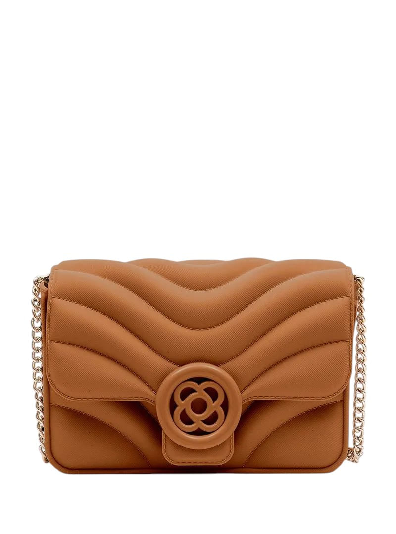 Bolso compacto, con efecto de nylon mate, cadenas en la correa, cierre de botón magnético y mandala Petite Jolie. Con una forma clásica y atemporal, es una gran opción versátil para quienes buscan practicidad en un estilo minimalista.