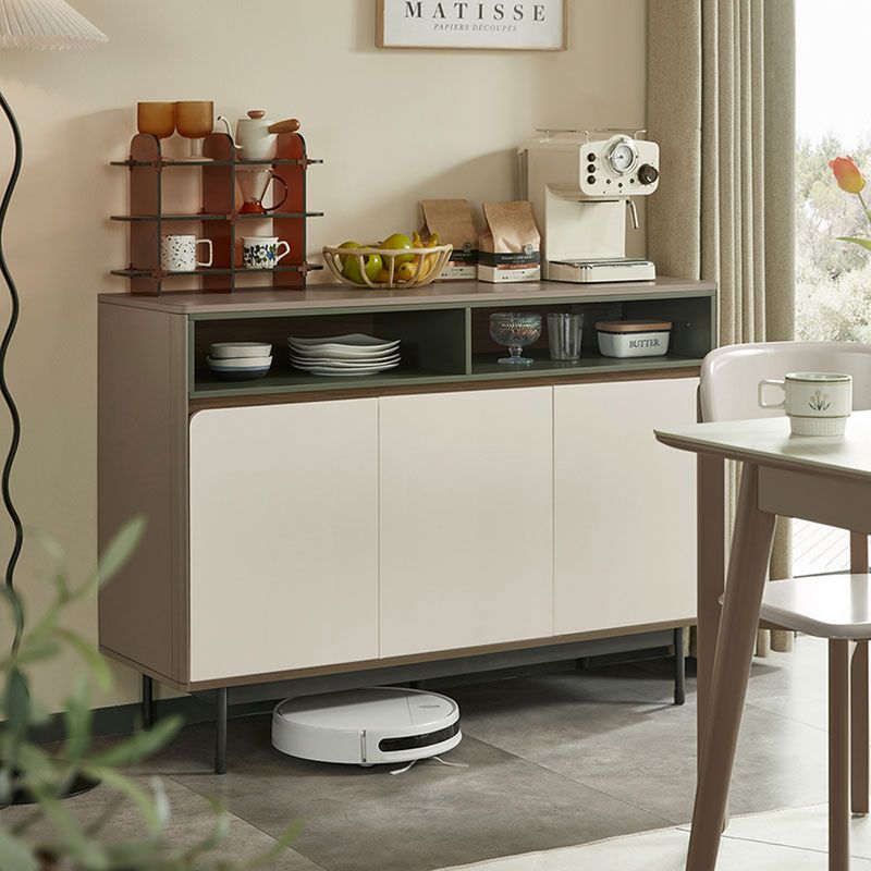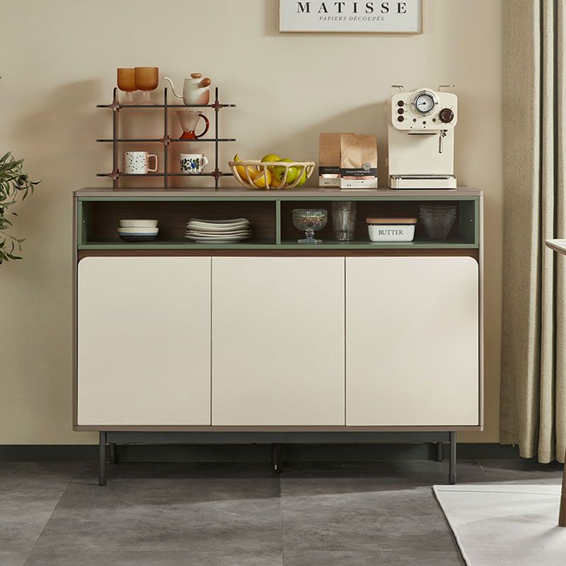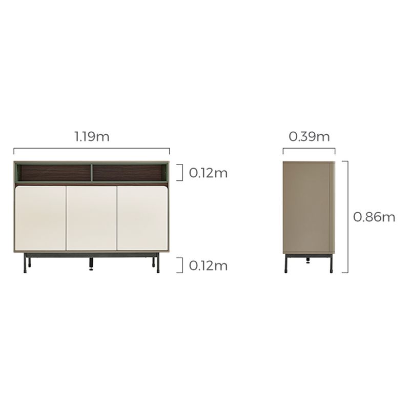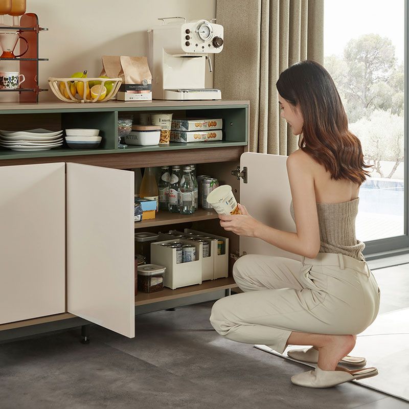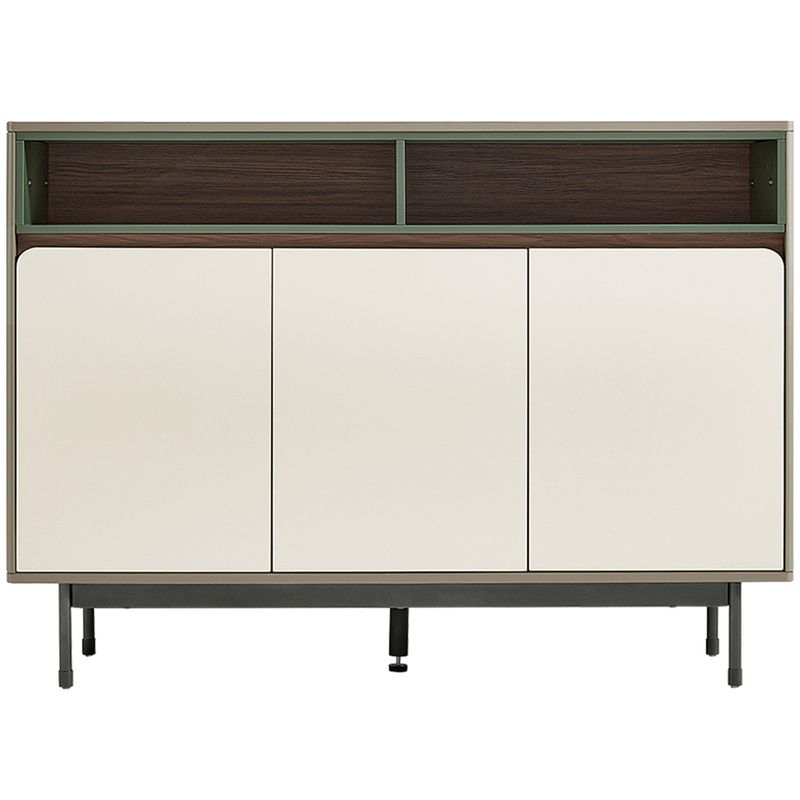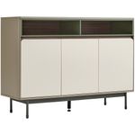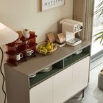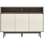 • Diseño contemporáneo y elegante: Bufetera de líneas limpias que combina frentes en tono claro con detalles en contraste oscuro y acentos verdosos, ideal para espacios modernos y sofisticados.
