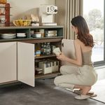• Amplia capacidad de almacenamiento: Incorpora tres puertas inferiores que permiten organizar vajilla, utensilios o artículos del hogar de forma ordenada y discreta.