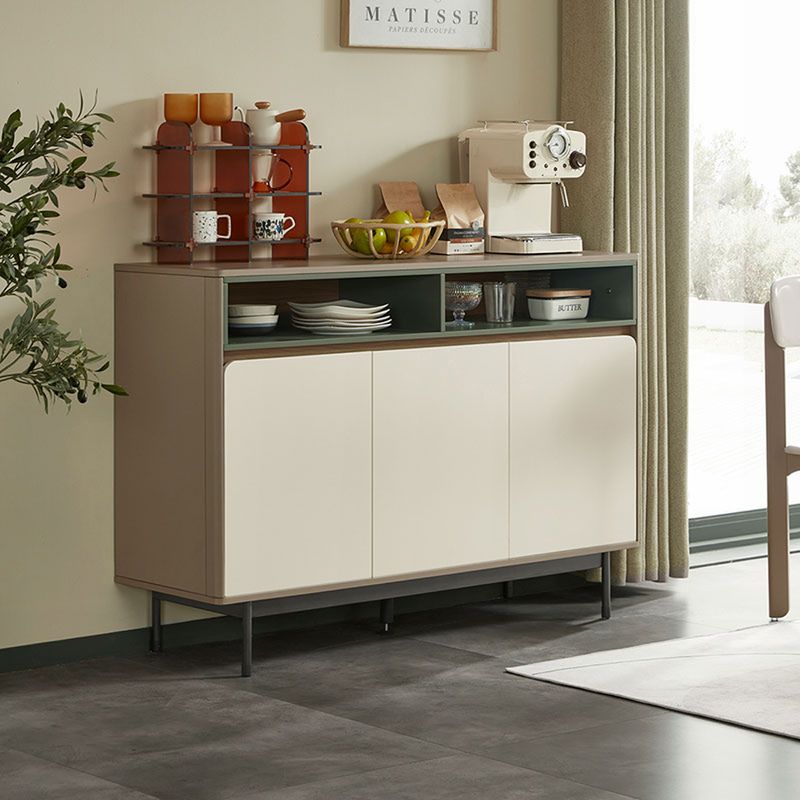 Bufetera combina diseño contemporáneo y funcionalidad en una sola pieza. Sus líneas limpias, puertas en tono claro y nichos superiores abiertos crean un equilibrio perfecto entre almacenamiento oculto y exhibición decorativa, ideal para realzar comedores, cocinas o áreas sociales con un estilo moderno y sofisticado.