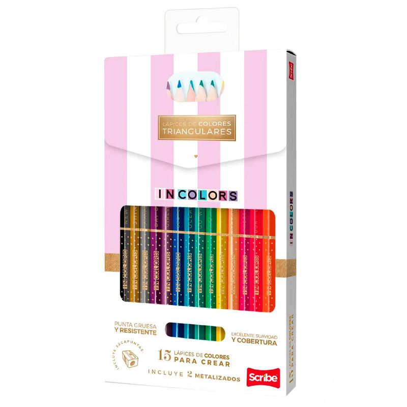 Caja de colores Scribe triangulares contiene 15 lápices vibrantes, ideales para estimular la creatividad. Su diseño triangular proporciona un agarre cómodo y ergonómico, facilitando su uso durante largas sesiones de dibujo. La presentación incluye una encantadora imagen de una rana, que añade un toque lúdico y atractivo. Estos lápices son perfectos para artistas de todas las edades, garantizando colores intensos y duraderos en cada trazo.