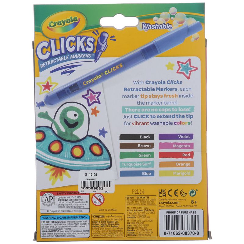 Caja 10 unidades marcadores lavables retráctil