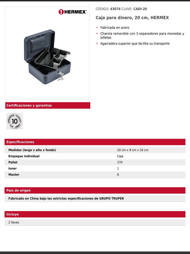 Las cajas de seguridad con llave ofrecen una alternativa práctica y resistente para resguardo inmediato de efectivo y accesorios. Están fabricadas en acero, incluyen agarradera superior y charolas removibles con separadores para mantener el contenido organizado. Ambas familias proporcionan seguridad, durabilidad y facilidad de uso en hogares, oficinas y comercios.