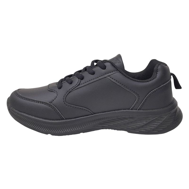 Zapatillas en color negro para niños de 4 a 14 años, cuenta con una parte exterior está elaborada en material sintético, proporciona durabilidad y resistencia. El interior está forrado con un material suave que asegura el confort durante todo el día. Además, la plantilla acolchada ofrece un soporte adicional para los pies, absorbiendo el impacto y proporcionando una pisada más cómoda. Este modelo cuenta con un cierre de cordones que garantiza un ajuste perfecto al pie. La suela es flexible y ofrece facilidad de movimiento además de un excelente agarre y estabilidad, siendo antideslizante y proporcionando seguridad en cada paso.