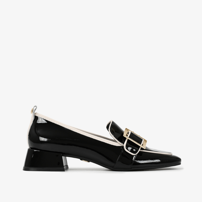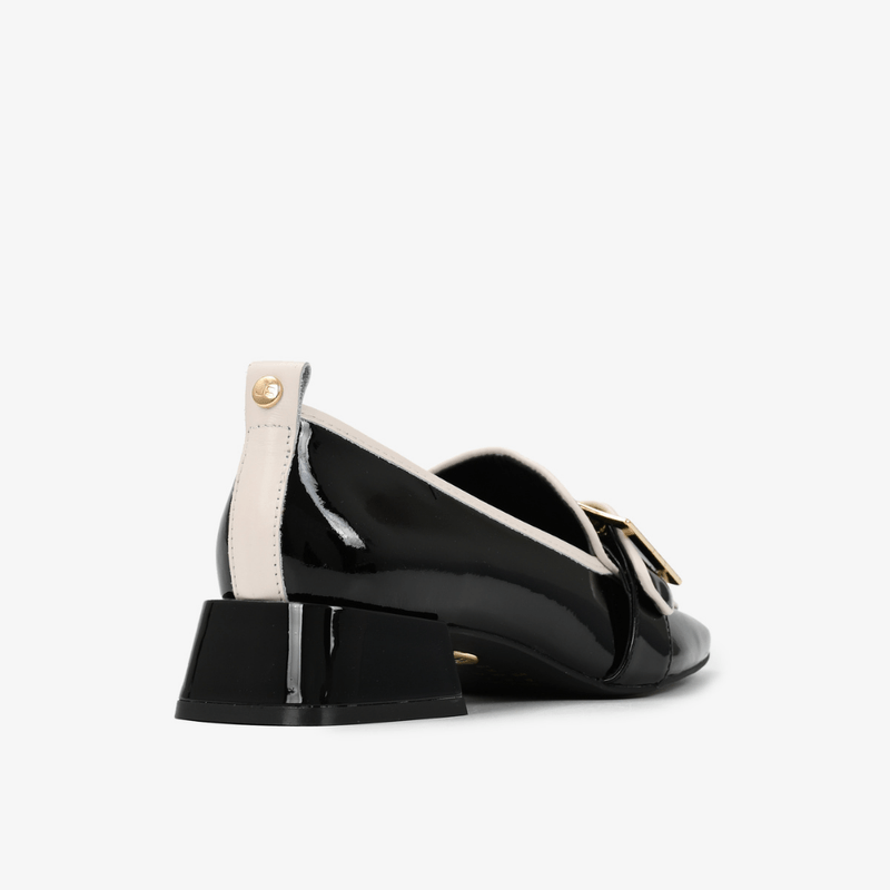 Cuero de alta calidad con acabado brillante que destaca en cualquier look. | Material: cuero suave | Cierre: ebilla | Plantilla: cuero verniz | Tipo de tacón: geométrico | Categoria: Calzado para dama | Altura del tacón (cm): 3.5 cm | Suela: PU | Marca: Jorge Bischoff