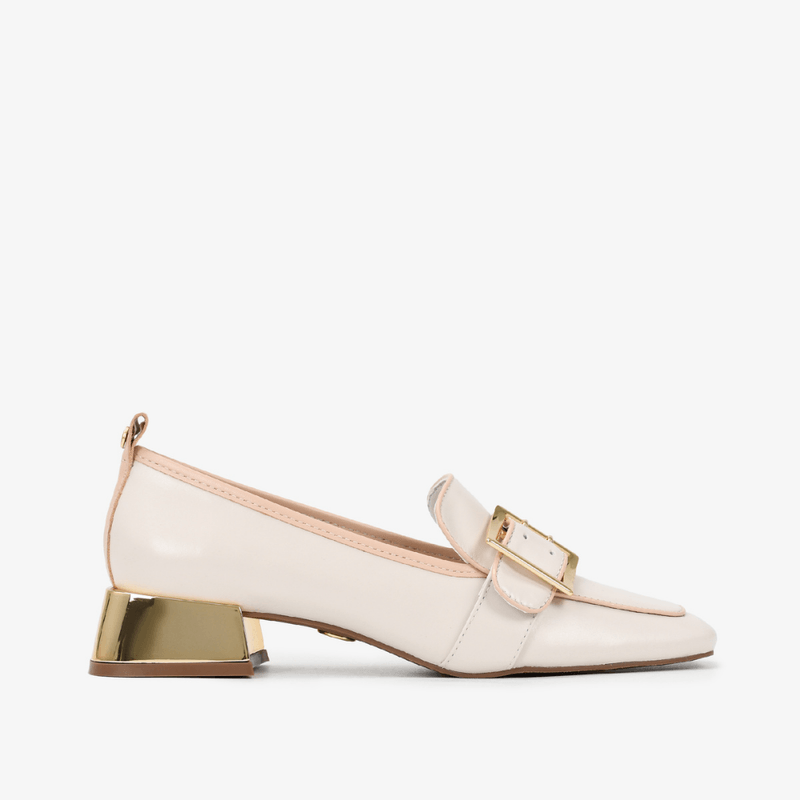 Mocasin off white, un acabado elegante que aporta un toque futurista y elegante. Mocasin con punta cuadrada, una silueta contemporánea y de gran presencia.