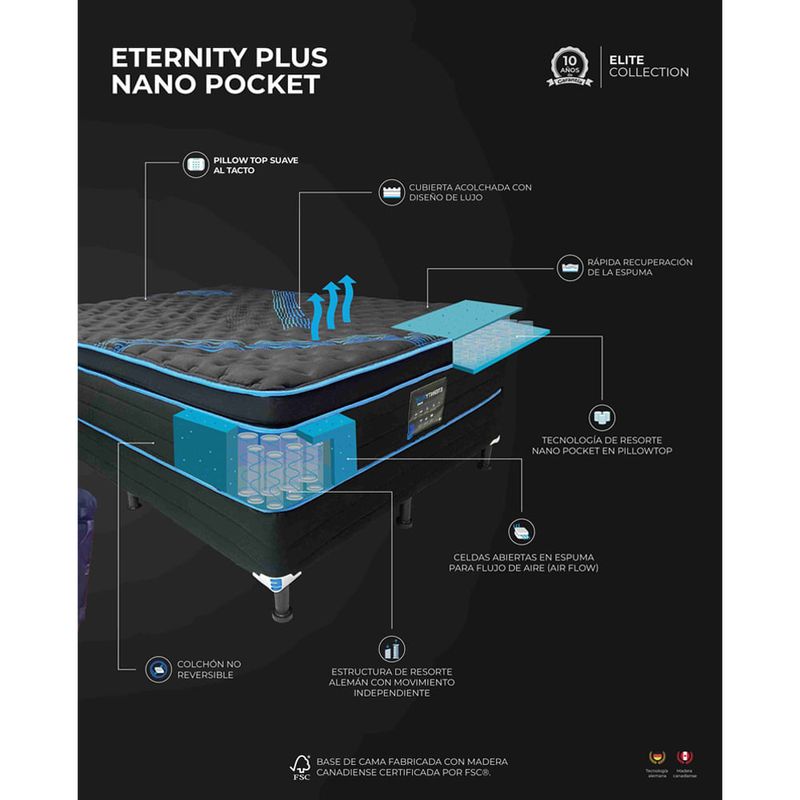 Nano resortes en el pillowtop, que aportan mayor suavidad y ergonomía, adaptándose perfectamente al cuerpo para un descanso reparador.