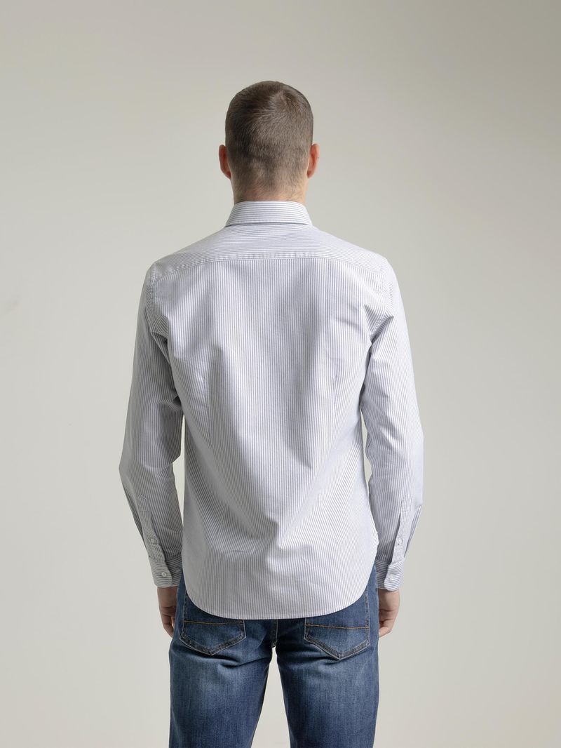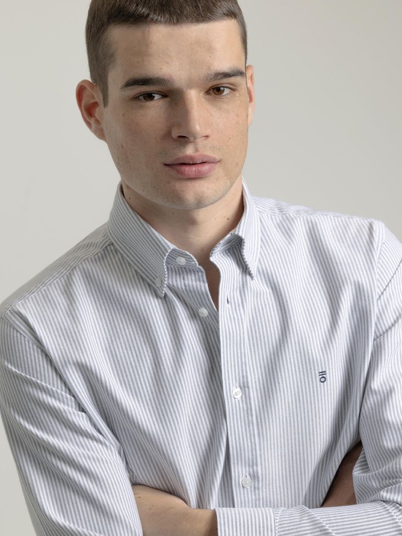 Combínala con jeans oscuros o pantalón chino para un estilo smart casual perfecto. Puedes llevarla por dentro con cinturón de cuero para un acabado más distinguido, y complementa con mocasines o zapatos casuales para un outfit versátil de oficina.