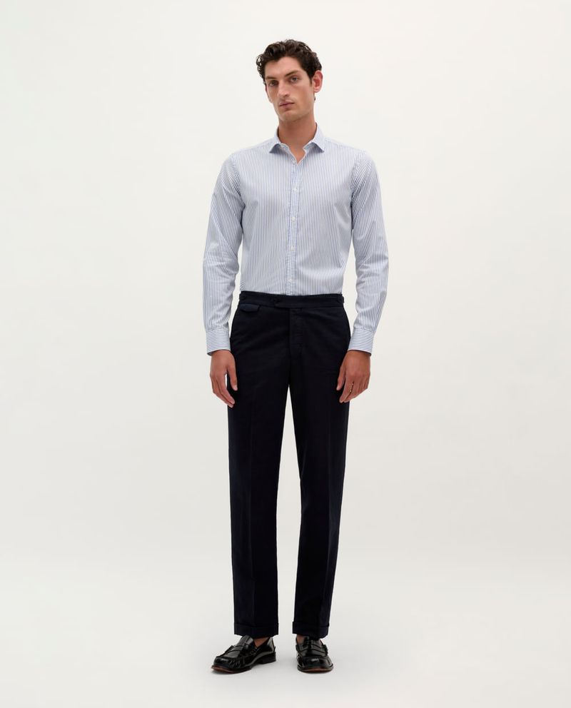 Camisa casual de la marca Scalpers, diseñada con delgadas rayas verticales color azul.