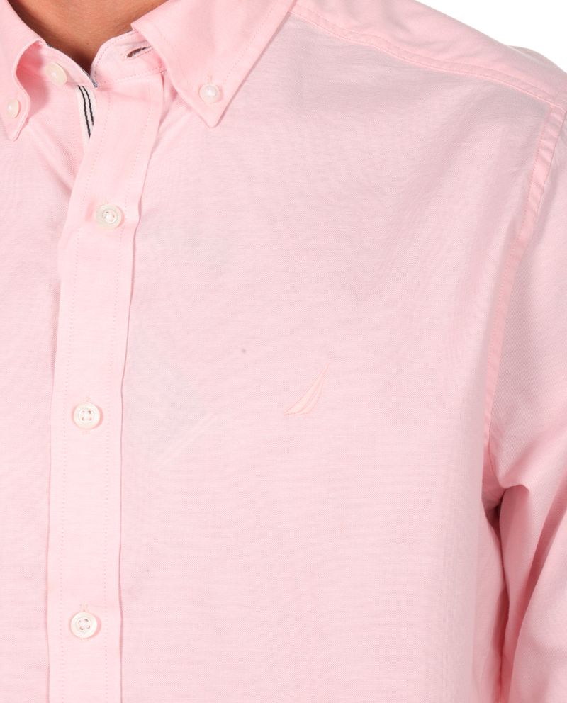 Camisa casual de la marca Nautica, prenda en color rosado con diseño sólido.
