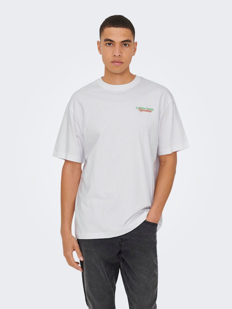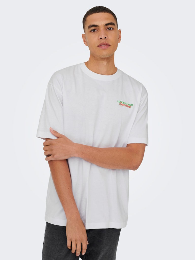 Esta prenda combina muy bien con pantalones en tonos tierra, café o beige para un look armonioso, aunque también puedes llevarla con denim claro para un contraste más fresco. El diseño gráfico le da un toque casual que funciona perfecto para outfits de fin de semana o salidas informales.
