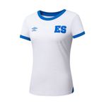 Camiseta deportiva para mujer del equipo de fútbol de El Salvador para la temporada 2025-26 destaca por su diseño elegante y funcional. Confeccionada en un tejido liviano, ofrece comodidad y transpirabilidad, ideal para el rendimiento atlético. Su base blanca se complementa con detalles en azul, como el logotipo de Umbro y el distintivo "ES", que resalta la identidad nacional. Además, su corte moderno se adapta a la figura femenina, realzando la estética tanto dentro como fuera del campo.