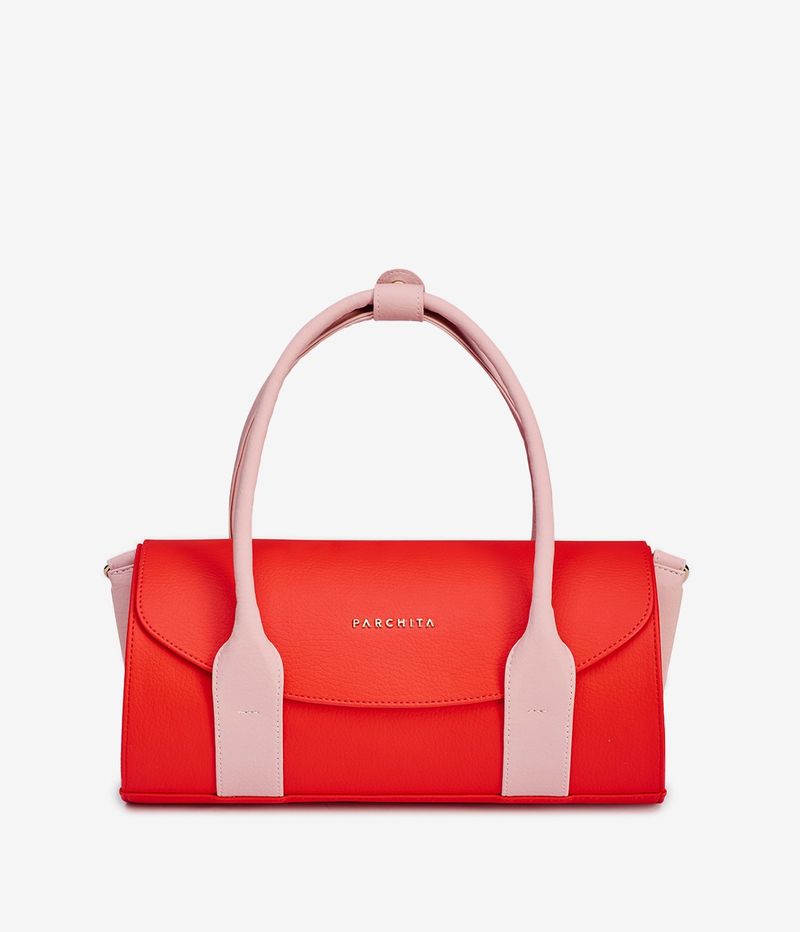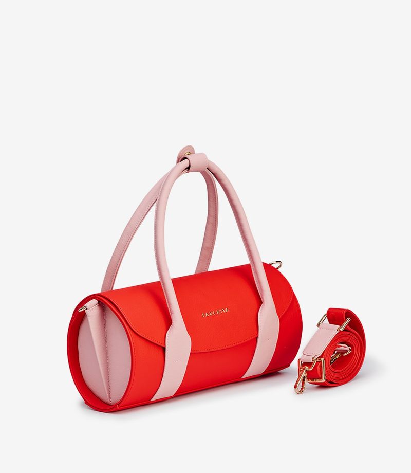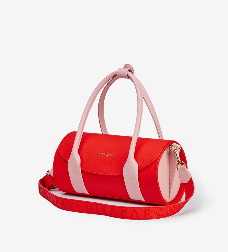 Este bolso cilíndrico combina a la perfección forma y estilo. Cuenta con asas dobles para llevarlo en la mano, cierre y correa intercambiable para mayor versatilidad. También incluye un bolsillo interior con cremallera e imanes para abrir y cerrar.