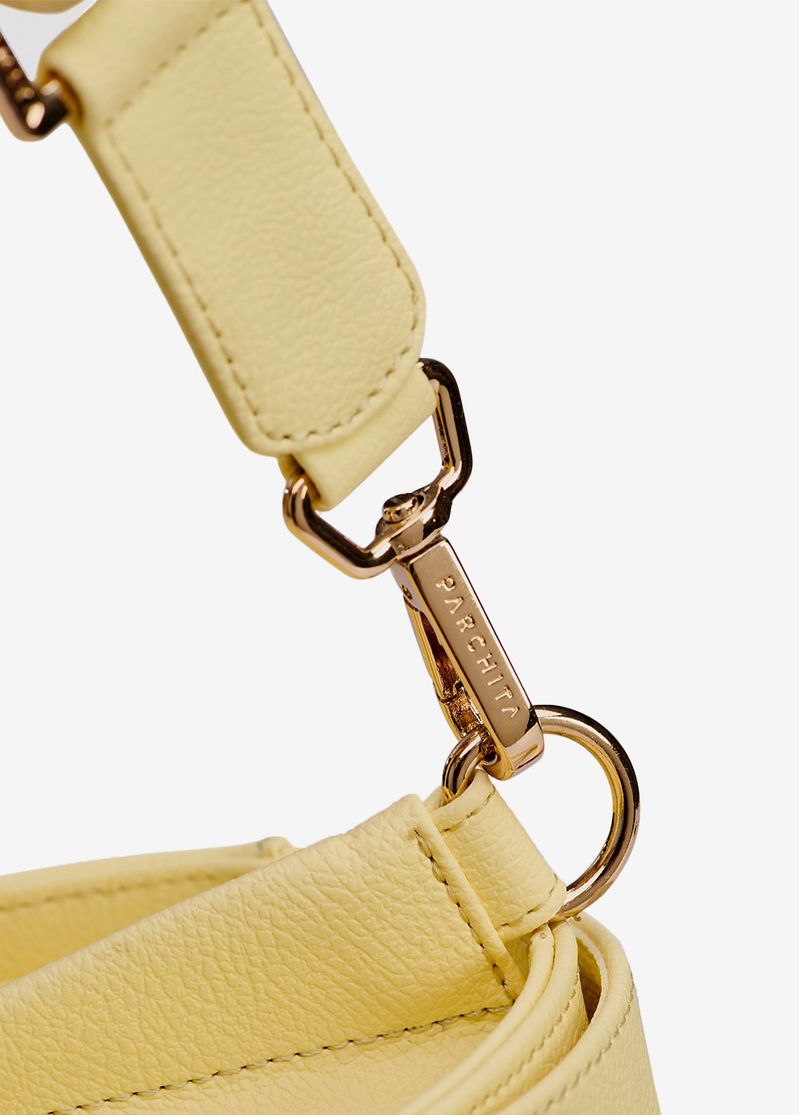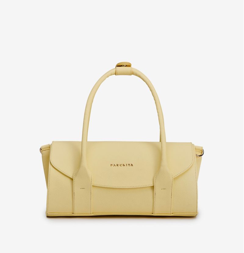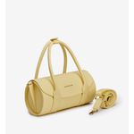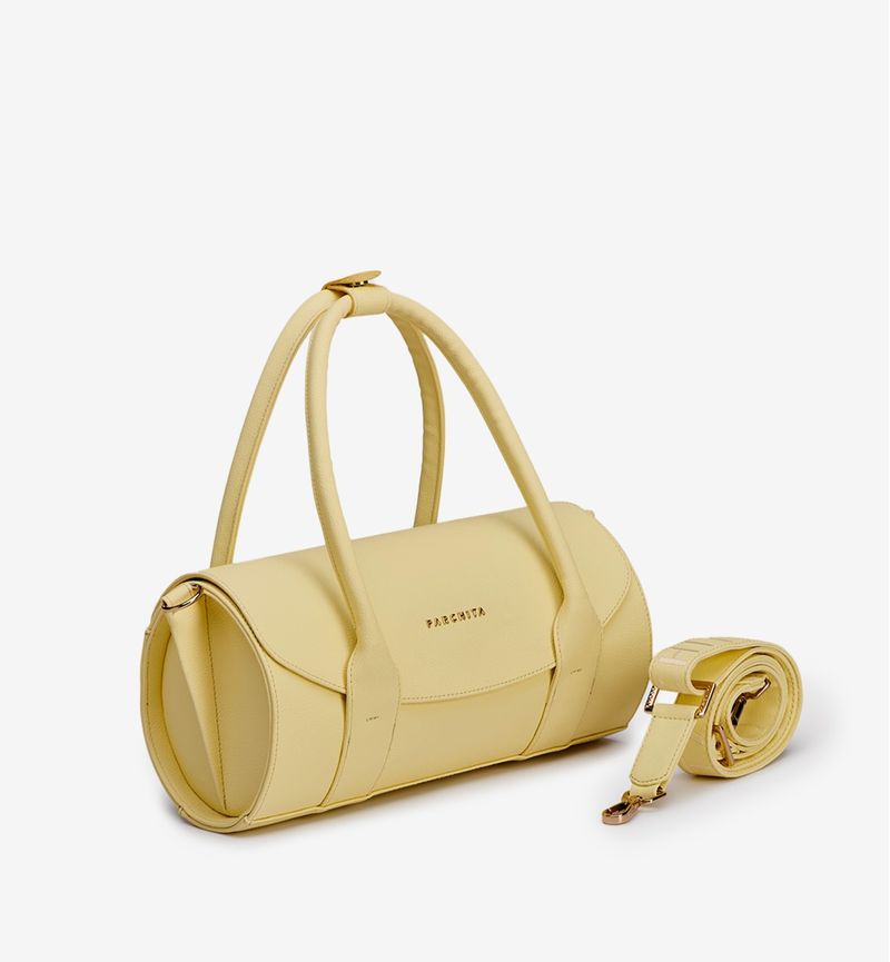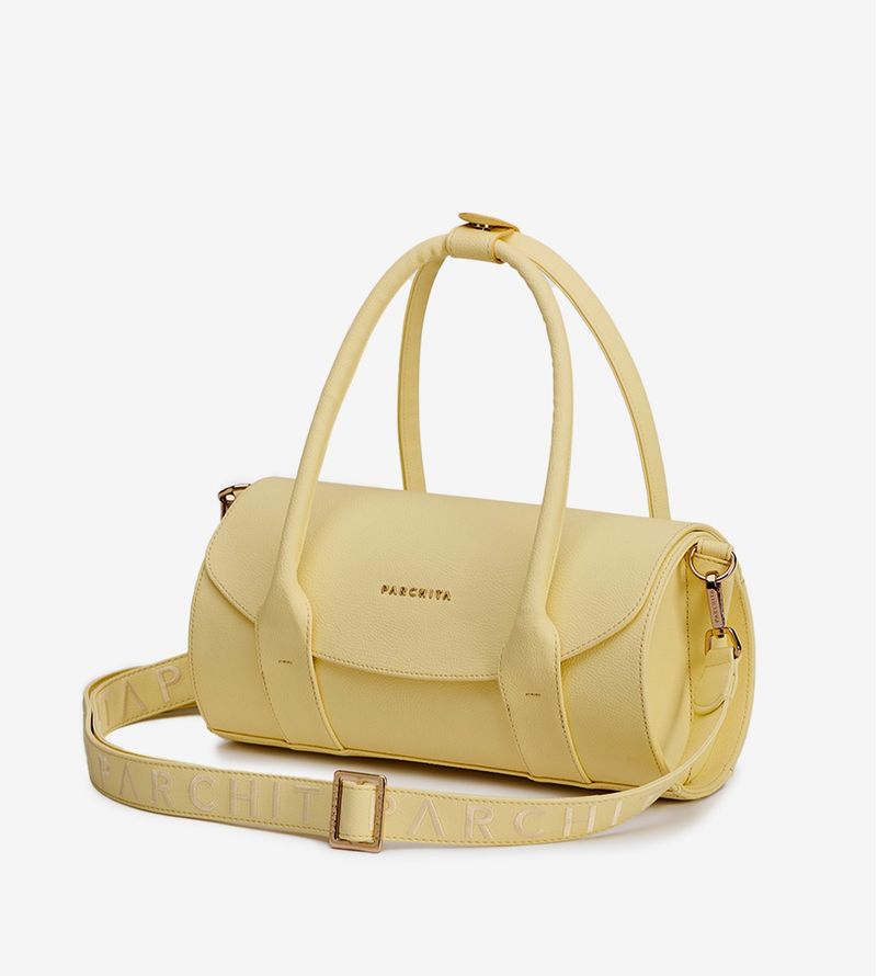 Este bolso cilíndrico combina a la perfección forma y estilo. Cuenta con asas dobles para llevarlo en la mano, cierre y correa intercambiable para mayor versatilidad. También incluye un bolsillo interior con cremallera e imanes para abrir y cerrar.