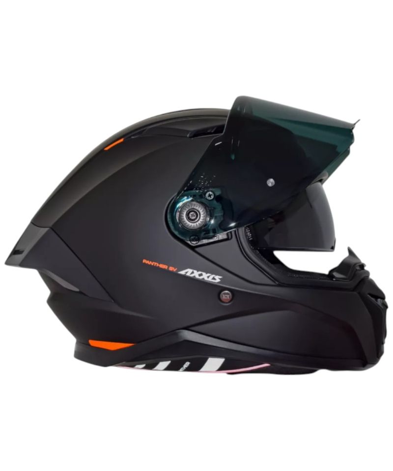 Casco moderno y deportivo en color negro mate con gráficos Panther.
