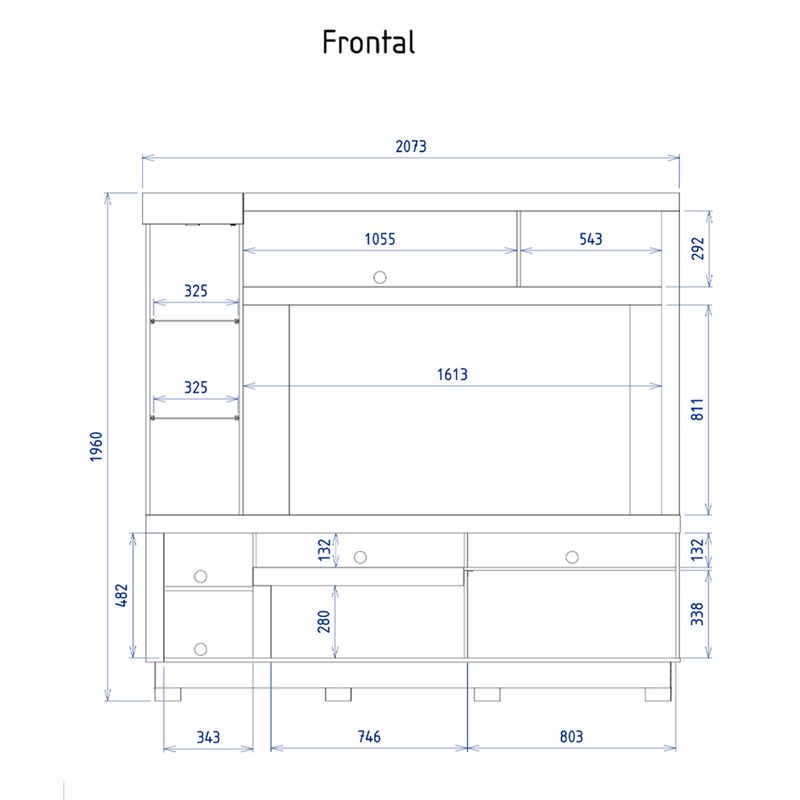 • Dimensiones generales: 207.3 cm de largo, 196 cm de alto, 37.5 cm de profundidad.