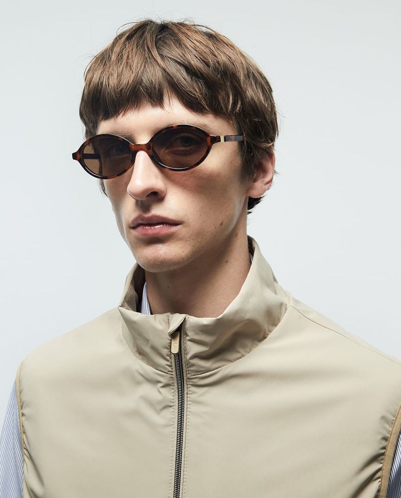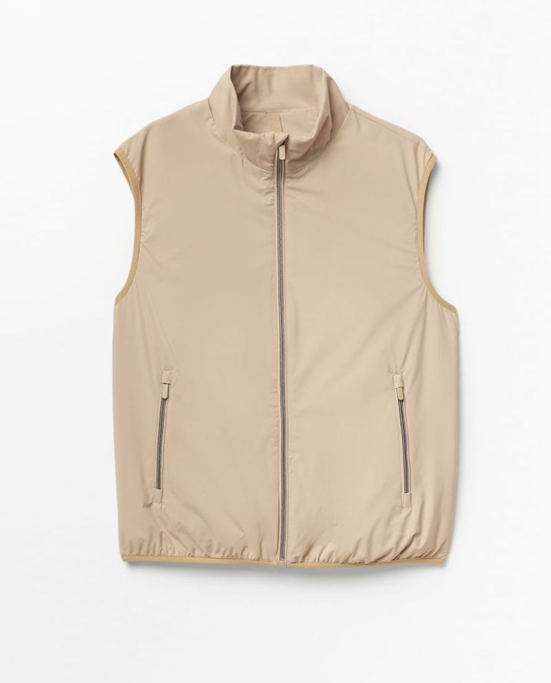 Chaleco casual marca Sfera, con diseño sólido en color beige y cuello alto.