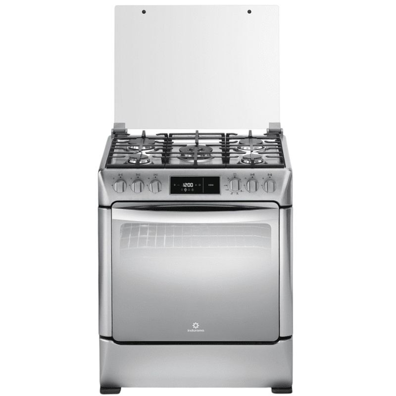Cocina de 30" de la marca Indurama, control touch, (activación directa) tapa de vidrio templado, tablero de acero inoxidable, parilla de hierro fundido,1 quemador triple corona , 1q ultrafast. plancha asadora, encendido directo desde las perillas en quemadores y horno, reloj digital con alarma.