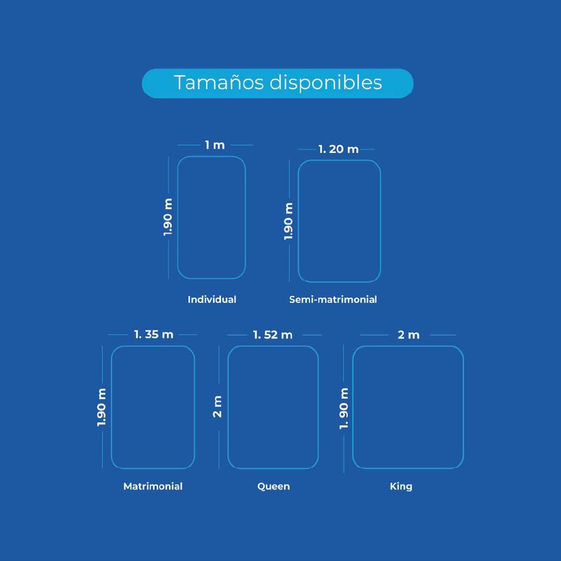 Diseño ergonómico que se adapta a tu cuerpo para mayor comodidad, tecnología de soporte firme con confort suave para un sueño profundo, acabados de alta calidad y tela fresca, ideal para cualquier temporada, perfecto para quienes buscan durabilidad, confort y estilo en su recamara, el colchón que combina con cualquier tipo de base.