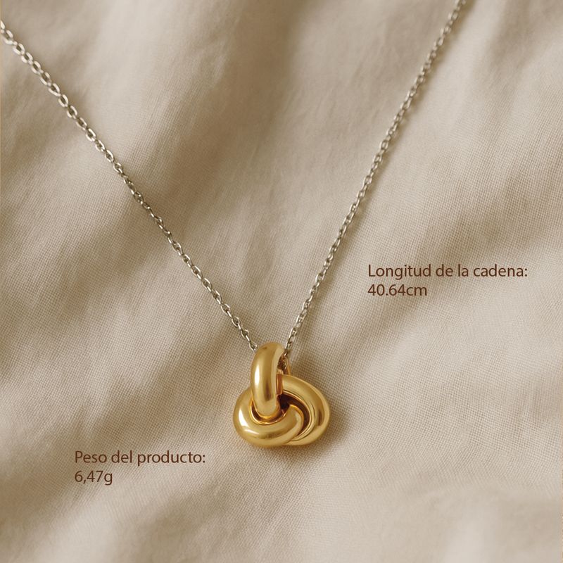 Este delicado collar en tono dorado está diseñado para añadir un sutil toque de sofisticación a cualquier estilo. Su dije en forma de nudo simboliza unión y fuerza, convirtiéndolo en un accesorio con significado y estilo.