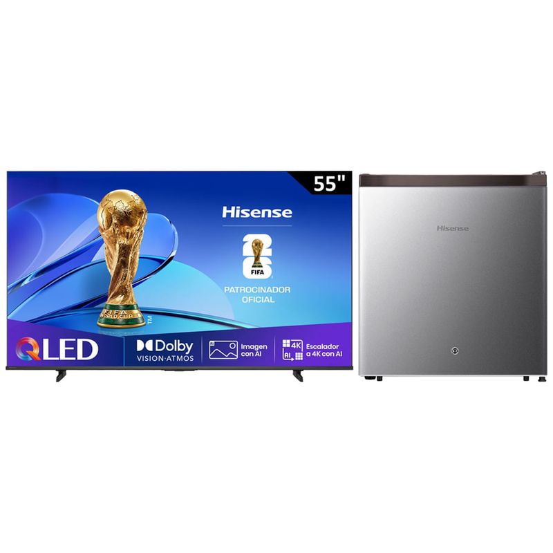 Combo Pantalla Hisense 55" (139.7 cm) QLED UHD 4K HDR10 55Q6Q + Minibar 43 L (1.6 PCU) con congelador RR16D6AGX1 Hisense
