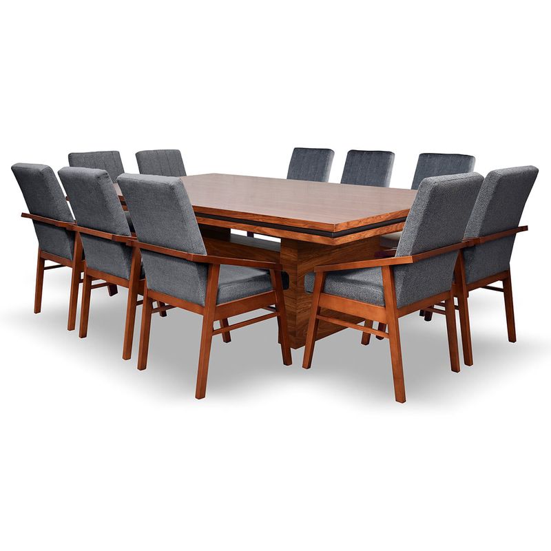 Juego de comedor Valdivia para 10 personas combina elegancia moderna y gran capacidad en un diseño ideal para espacios amplios. Su mesa rectangular con estructura robusta se complementa con sillas tapizadas de alto confort, creando el ambiente perfecto para reuniones, celebraciones y momentos inolvidables alrededor de la mesa.
