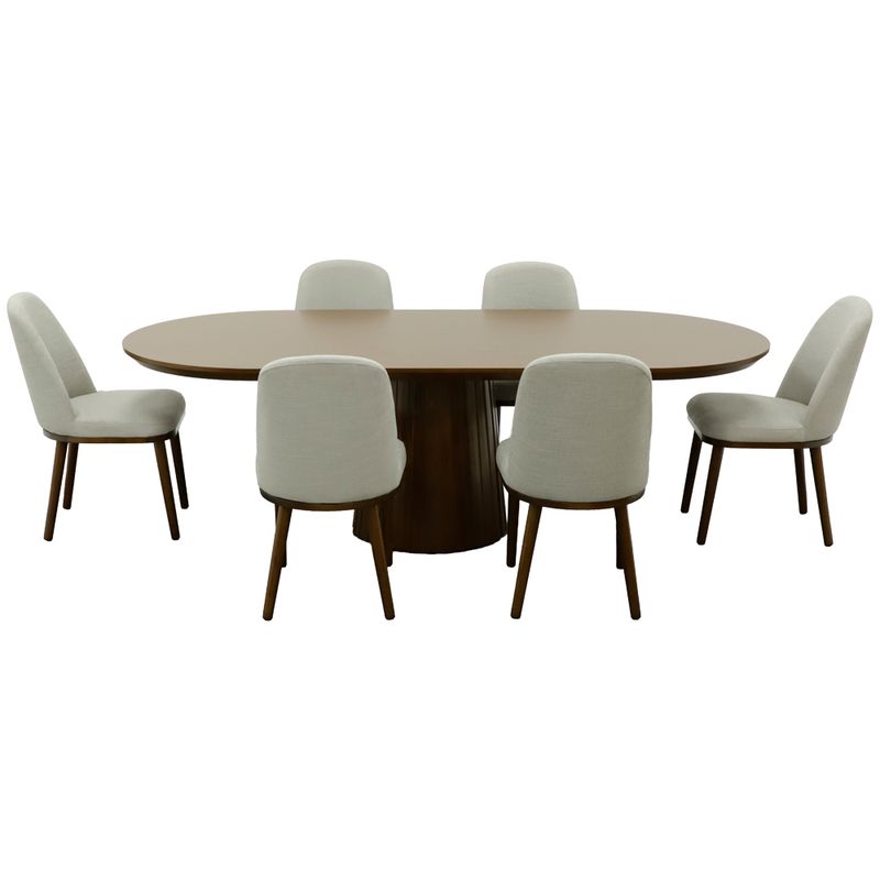 El comedor Elegance combina diseño ovalado, base escultórica y sillas tapizadas para crear un espacio sofisticado, cómodo y perfecto para compartir.