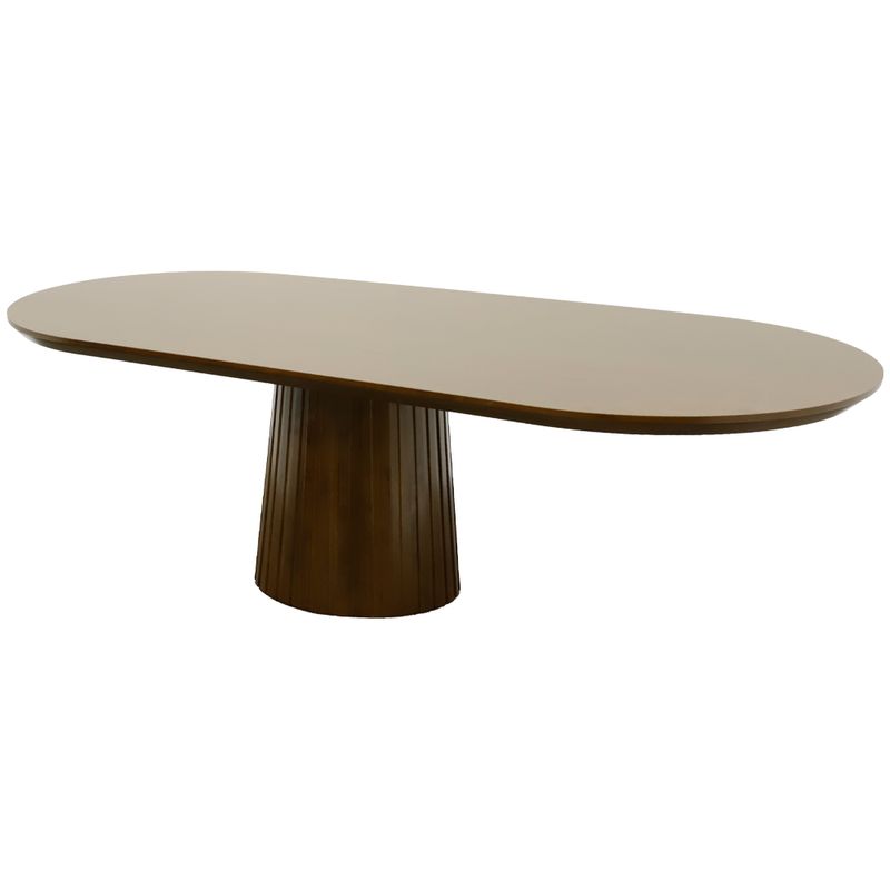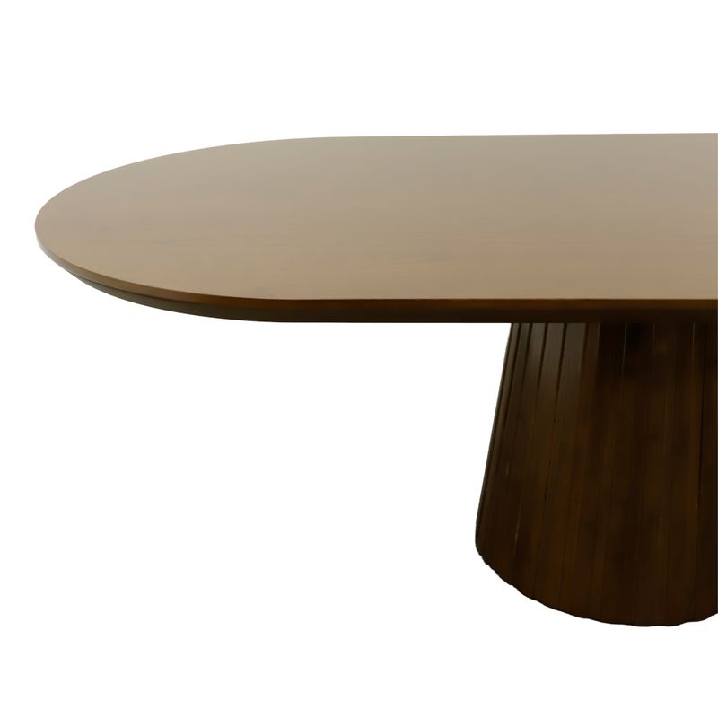 • Base central tipo pedestal: Su estructura central sólida con diseño acanalado no solo aporta estabilidad superior, sino también un toque escultórico que eleva el estilo del comedor.