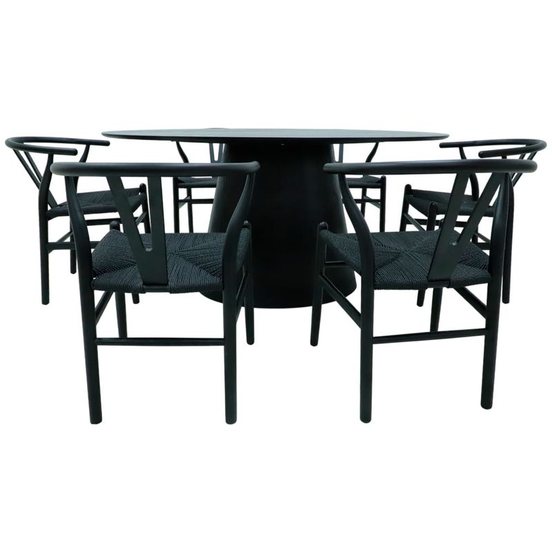 Dale un toque de distinción a tu hogar con el Juego de Comedor Redondo Negro para 6 personas, una pieza que combina diseño moderno, elegancia absoluta y confort artesanal. Su mesa robusta de acabado negro profundo aporta una presencia imponente, mientras que sus sillas con asientos tejidos en cuerda y estructura de madera ofrecen una comodidad natural con estilo vanguardista. Perfecto para quienes buscan un comedor sofisticado, funcional y con carácter contemporáneo.