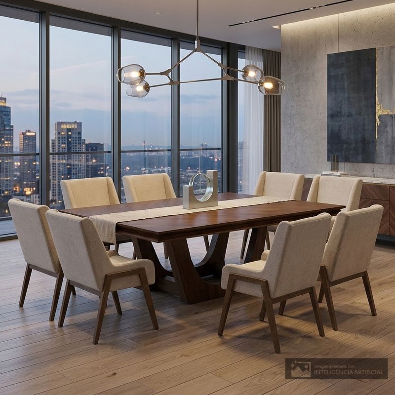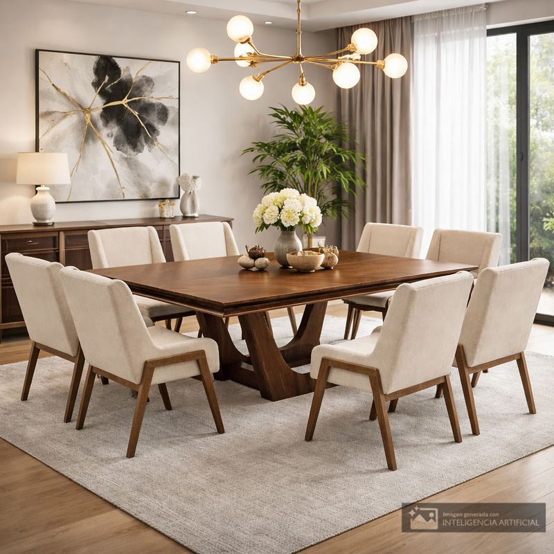 Estilo contemporáneo premium: Un conjunto pensado para convertirse en el punto focal del comedor, combinando diseño, funcionalidad y materiales de alta calidad.