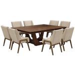 Juego de comedor rectangular Noruega para 8 personas combina elegancia contemporánea y gran funcionalidad en un diseño imponente. Su mesa de gran formato y estructura que ofrece resistencia y estilo, mientras que sus sillas tapizadas brindan comodidad superior y un look sofisticado, convirtiéndolo en el protagonista ideal de comedores amplios y modernos.