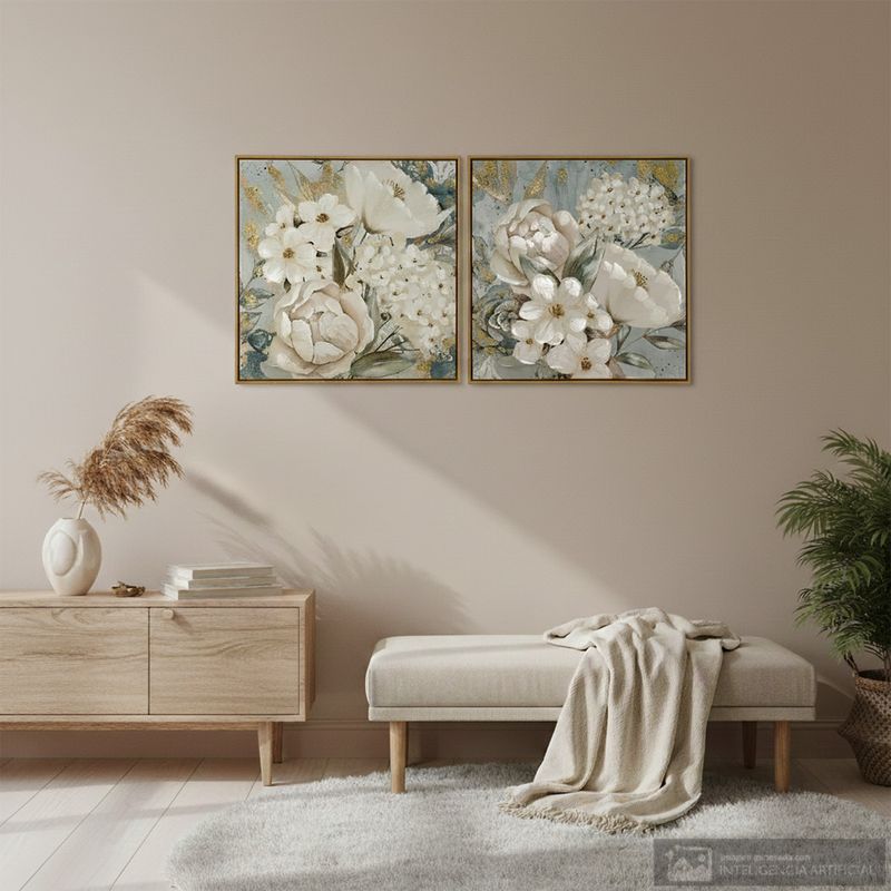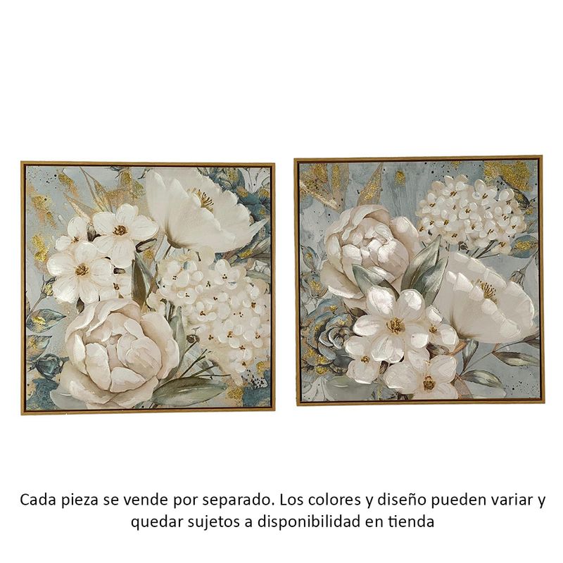 Cuadro decorativo con diseño floral y marco de madera, ideal para realzar paredes con un toque natural y sofisticado. Perfecto para combinar con otros cuadros y crear composiciones únicas en salas o dormitorios.