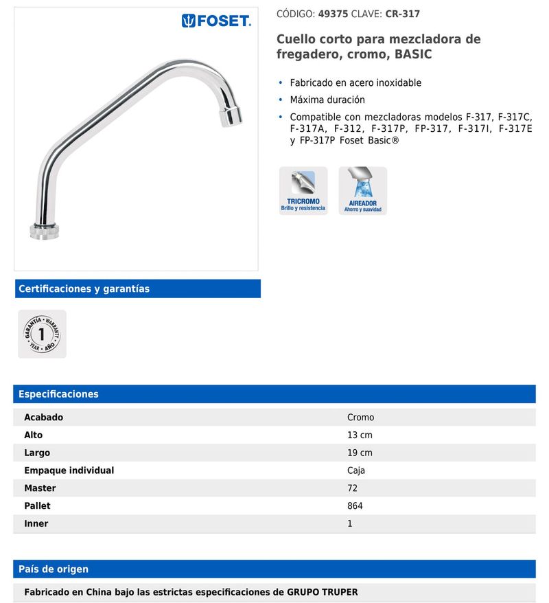 Repuestos para mezcladoras de fregadero fabricados en acero inoxidable con acabado cromo para alta durabilidad y apariencia limpia. Disponibles en dos variantes ?cuello largo y cuello corto? para adaptarse a diferentes configuraciones y alturas de salida.