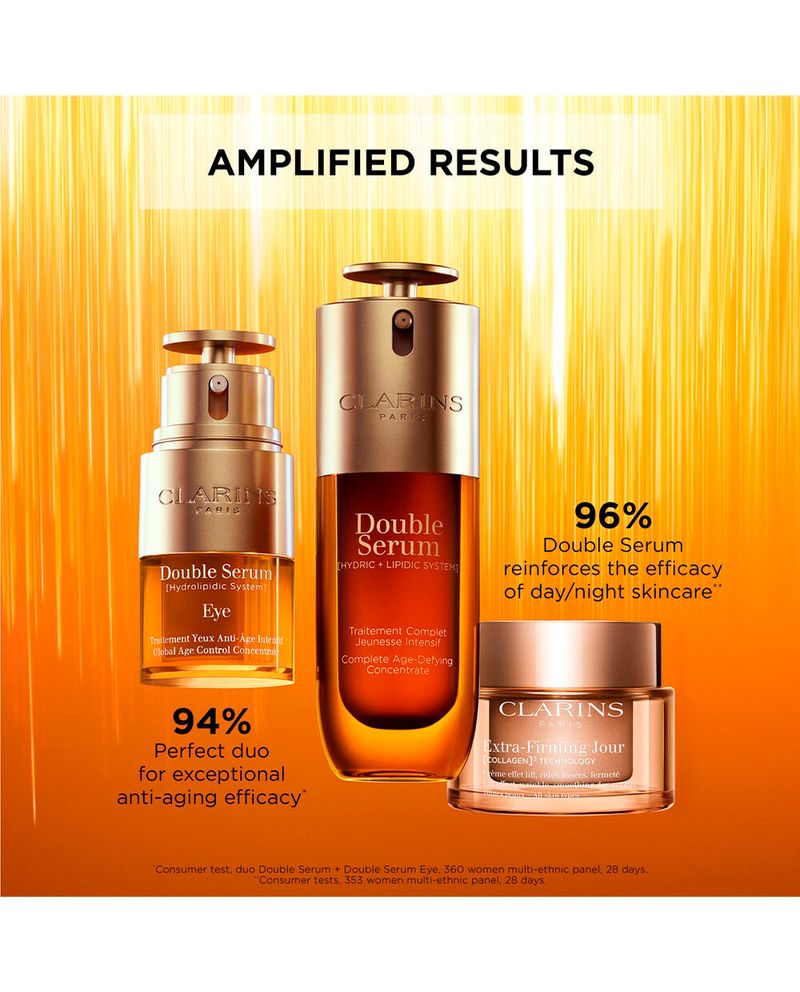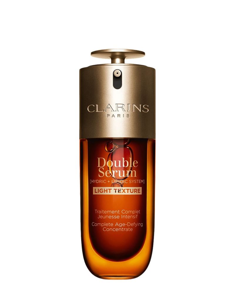 El icónico Double Serum formulado en una nueva textura, ligera e imperceptible, con resultados probados sobre los signos de la edad. Desarrollado por los Laboratorios Clarins, su doble fórmula única contiene 21 extractos de plantas que ayudan a estimular las 5 funciones vitales de la piel (regeneración, nutrición, oxigenación, hidratación y protección) y a combatir los signos de la edad. Su doble textura de aceite evanescente y gel fundente deja de inmediato la piel al natural y un agradable perfume con notas frescas, afrutadas y florales. Los dos frascos, uno dentro del otro, concentran ambas fórmulas: una proeza tecnológica y un diseño ecológico que prioriza los materiales responsables y reduce los residuos.