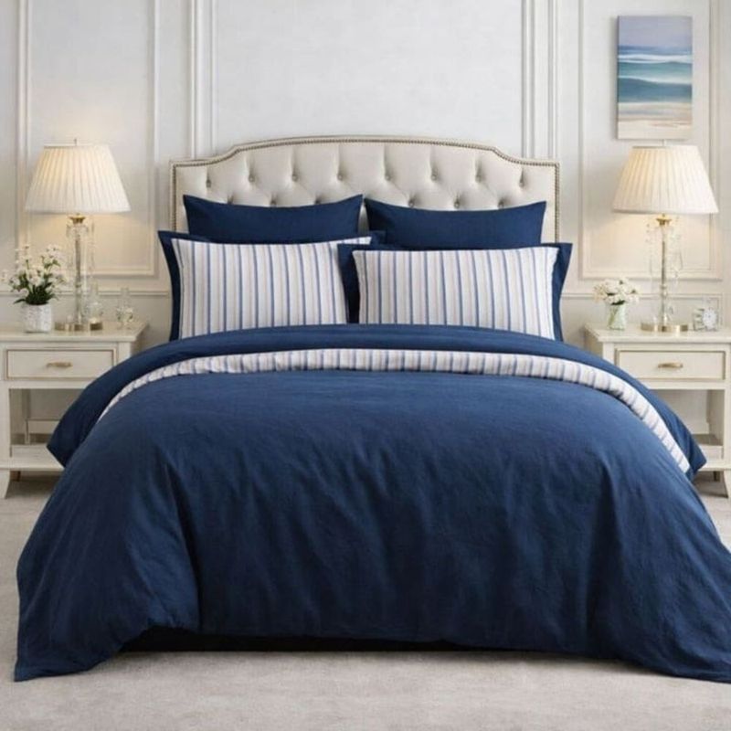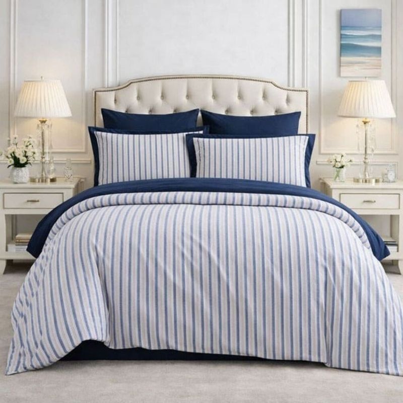 Duvet Cover Reversible 100% Algodón Navy Stripes Full size / Queen size