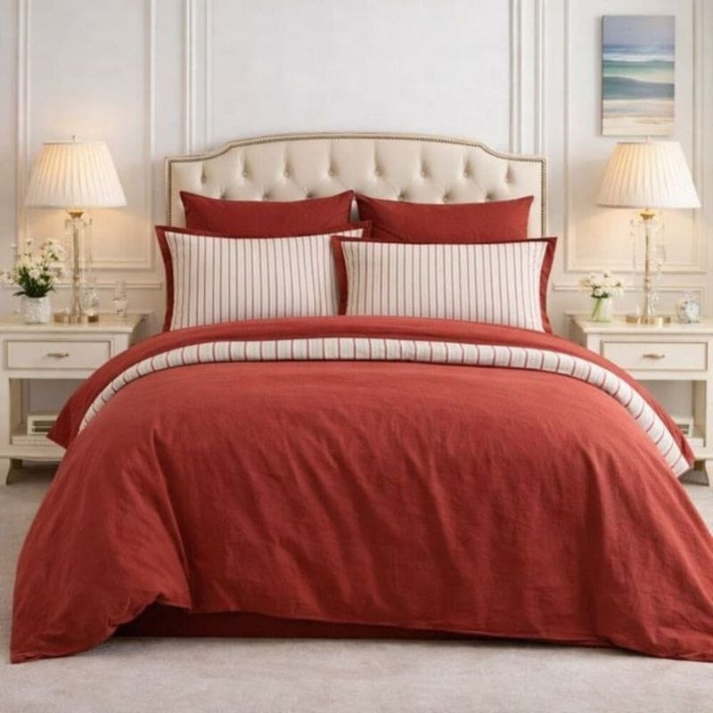 Duvet Cover Reversible 100% Algodón Red Stripes Full size / Queen size