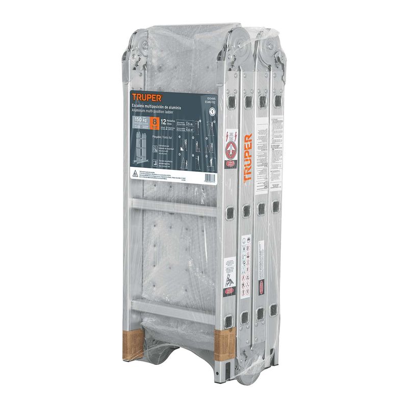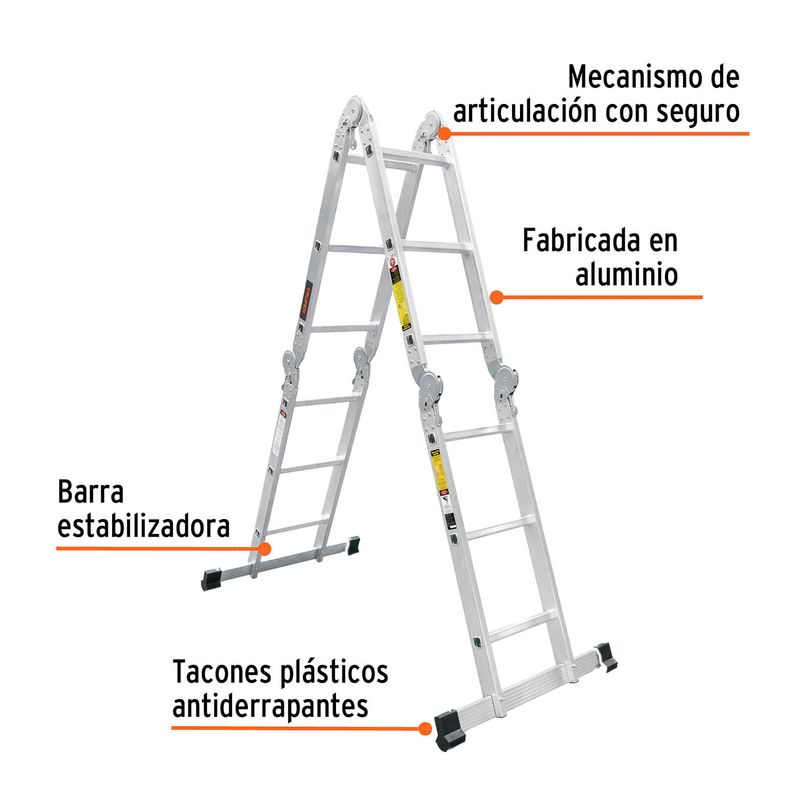 La escalera multiposición Truper de aluminio, ideal para trabajos en distintas configuraciones: andamio, tijera o extensión.