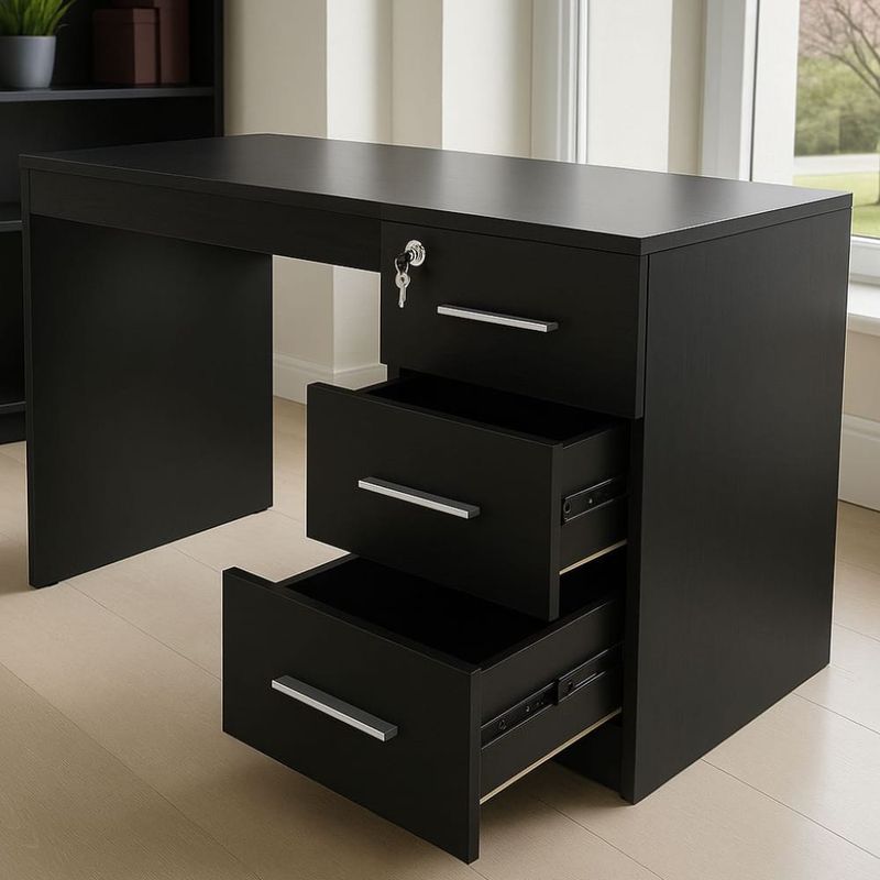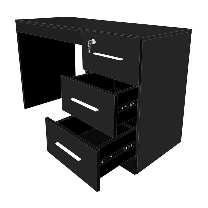 Escritorio Ejecutivo Negro con Tres Gavetas y Llave Central Para Oficina