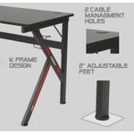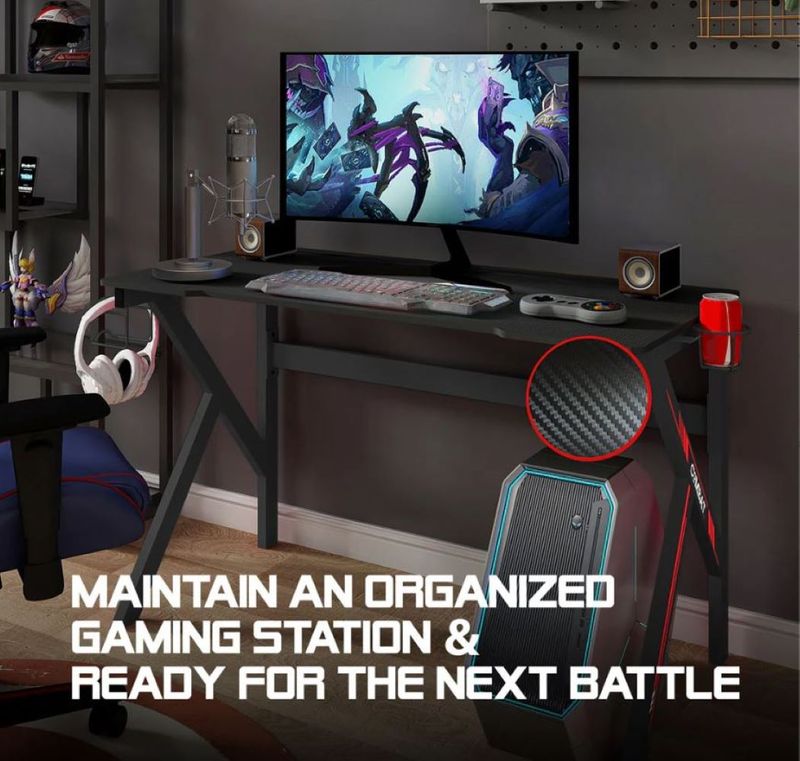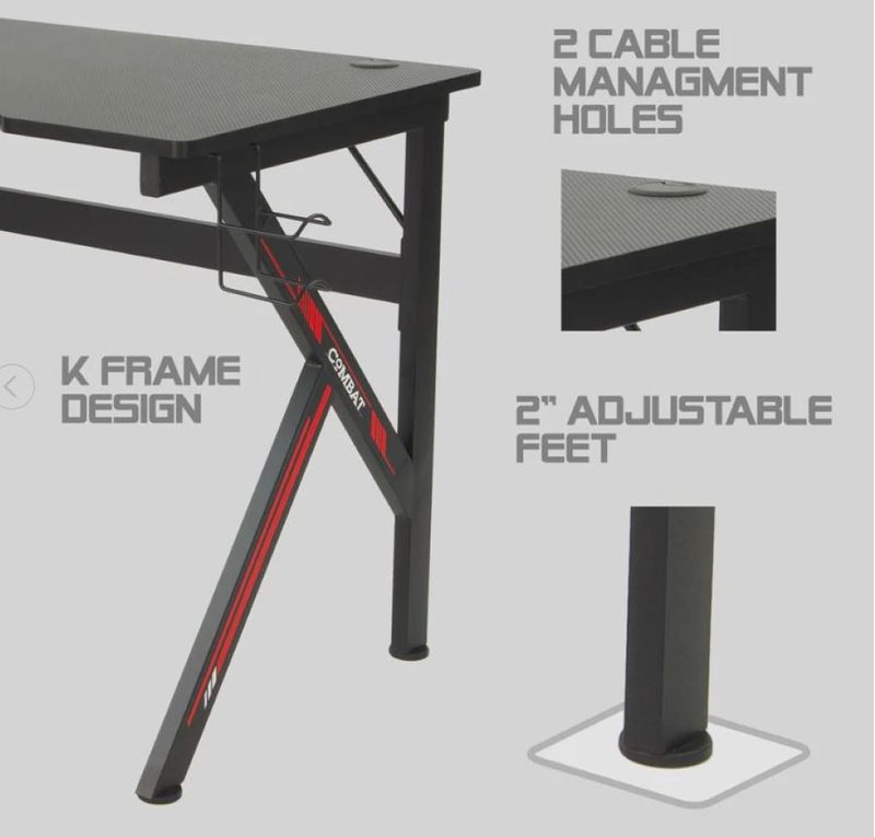 El Argom Ergo Z47 ARG-DK-9247BK es un escritorio gaming diseñado para ofrecer comodidad, estilo y resistencia en tu espacio de juego o trabajo. Cuenta con una estructura de acero con diseño K-Frame que brinda mayor estabilidad y un amplio tablero con acabado tipo fibra de carbono resistente al desgaste. Incluye accesorios prácticos como portavasos, soporte para control, gancho para auriculares y sistema de gestión de cables, permitiendo mantener tu estación organizada y lista para largas sesiones frente a la computadora.
