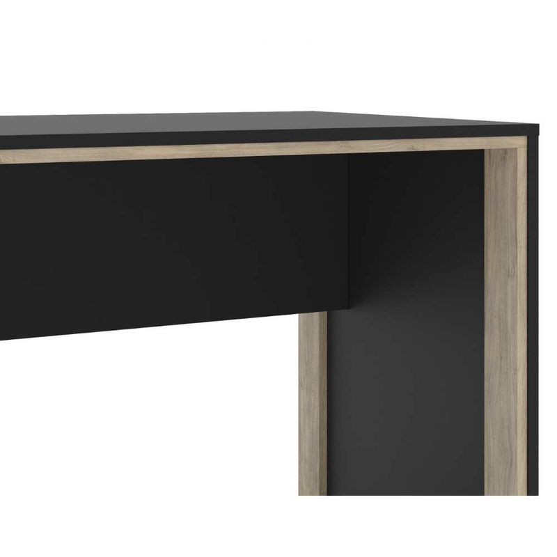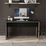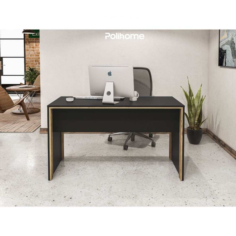 Eleva tu espacio de trabajo con este escritorio de diseño contemporáneo. Su combinación en color negro mate y bordes internos en color madera le dan un toque sofisticado y profesional a cualquier habitación u oficina. Este mueble con diseño limpio es ideal para mantener un ambiente despejado y moderno. Cuenta con una estructura amplia, estable y firme perfecto para computadoras de escritorios e impresoras.