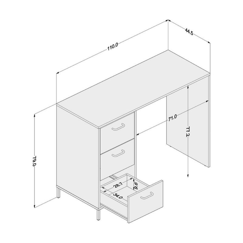 Cuenta con 3 cajones de gran capacidad en el lateral izquierdo, perfecto para guardar documentos, material de oficina, etc.